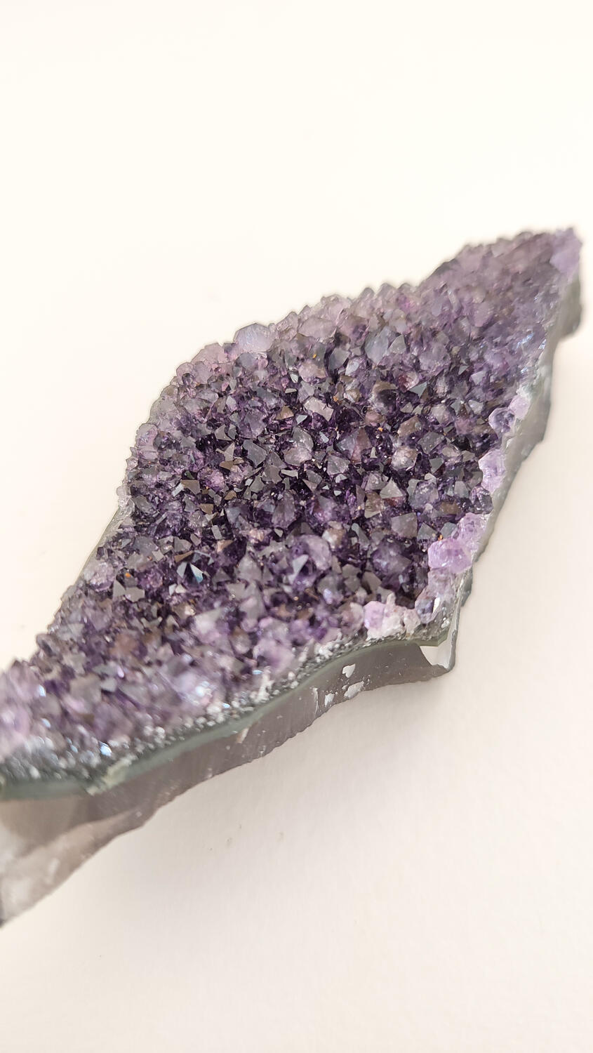 Collocare una drusa di ametista in casa o in ufficio aiuta a creare un'atmosfera di calma e serenità. Questa pietra assorbe le energie negative e favorisce la concentrazione, rendendola ideale per studi, spazi di meditazione o luoghi di lavoro.