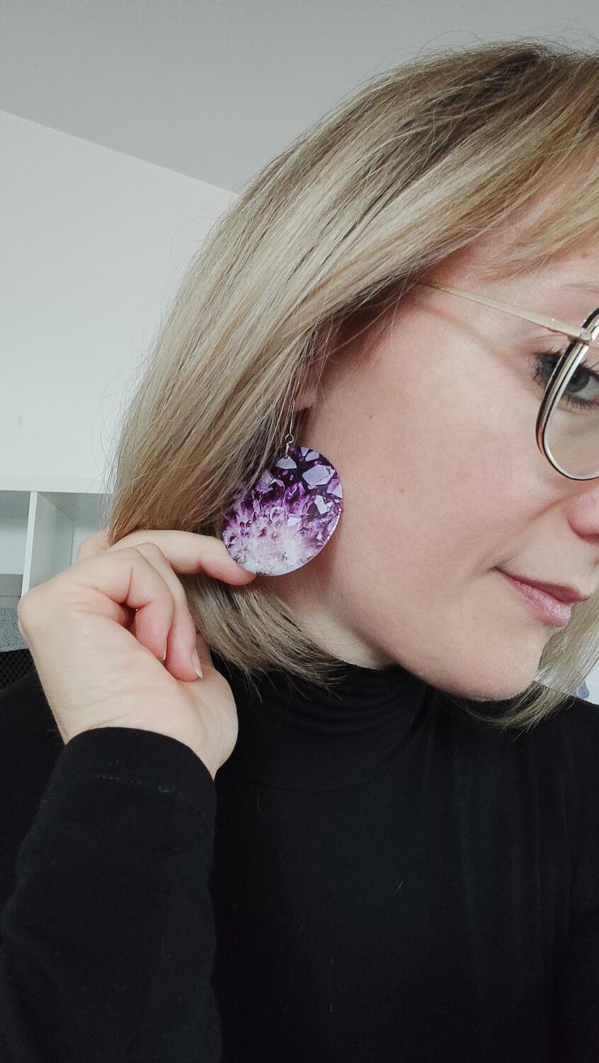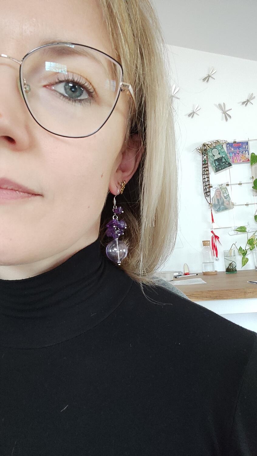 Orecchini Asimmetrici con Madreperla, Ametista e Vetro soffiato