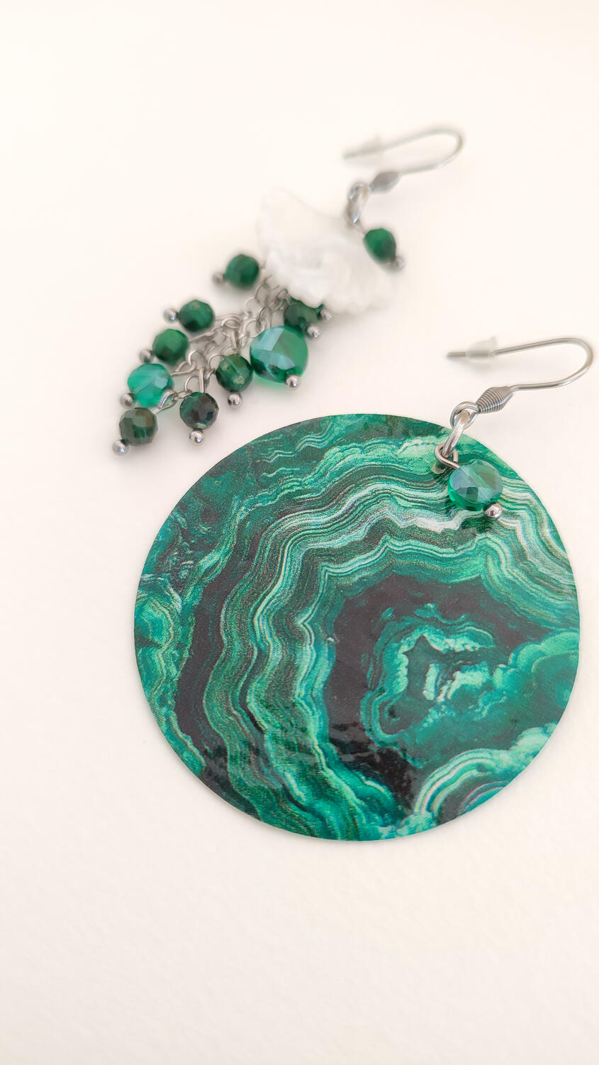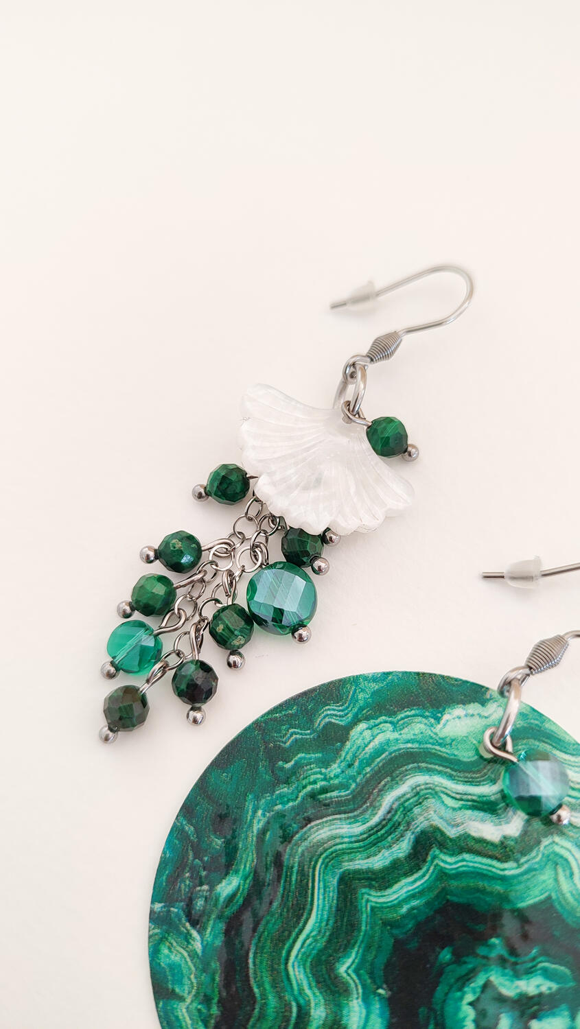 Orecchini Asimmetrici con Madreperla, resina e Malachite