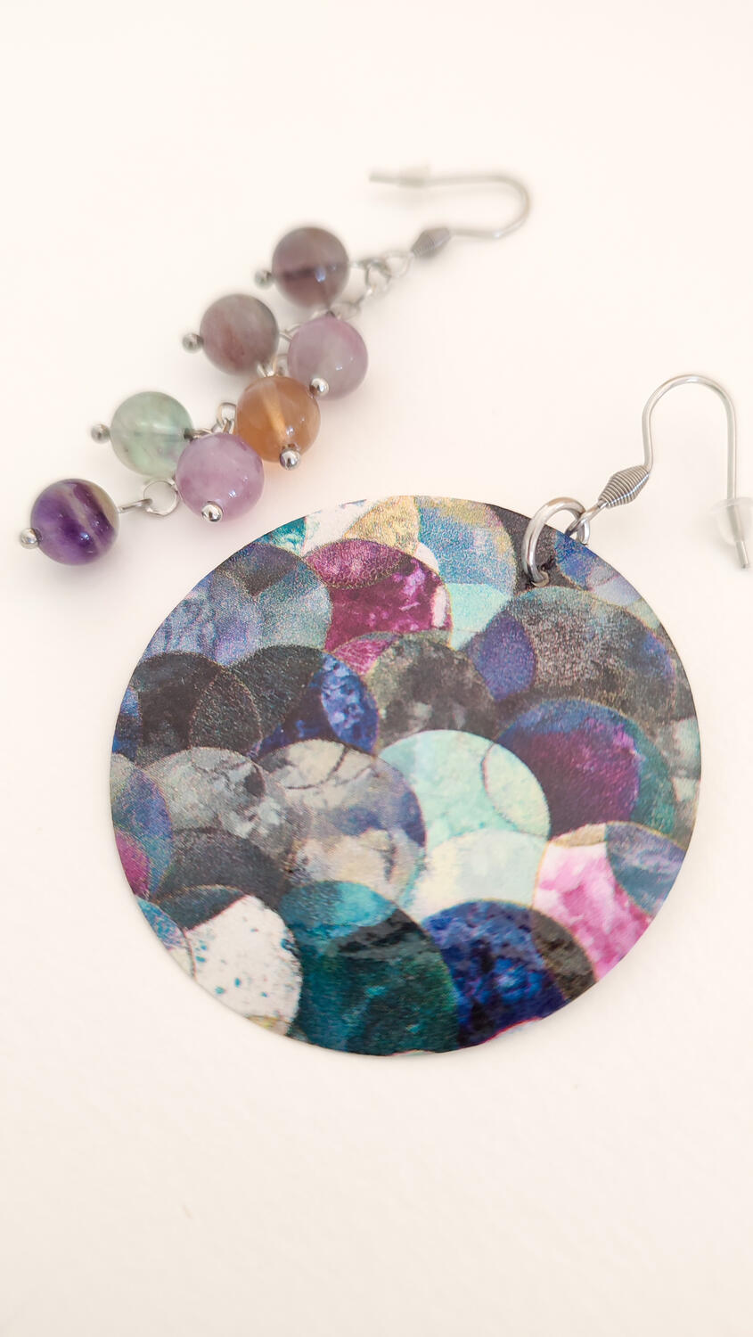 Orecchini Asimmetrici con Madreperla e Fluorite
