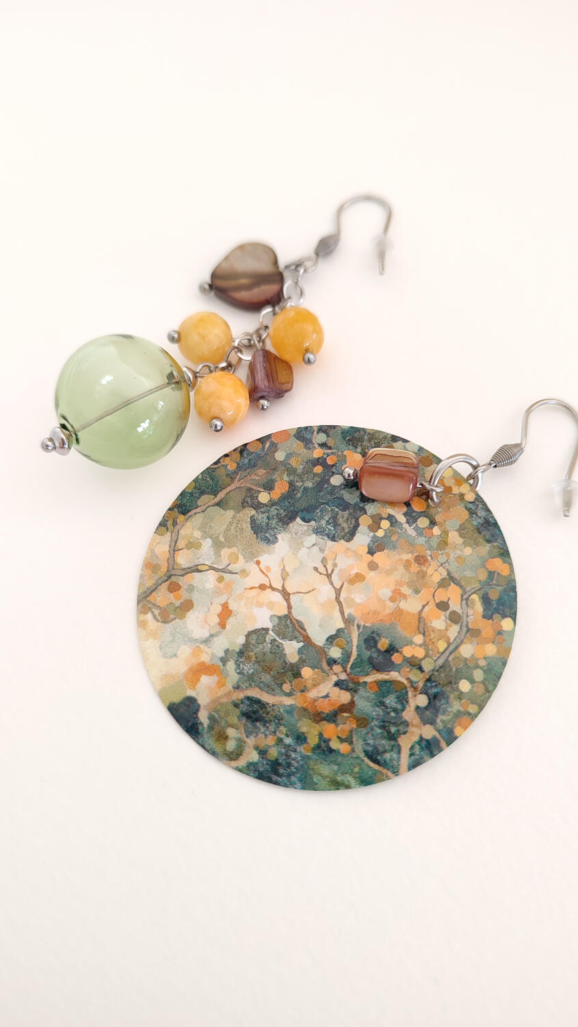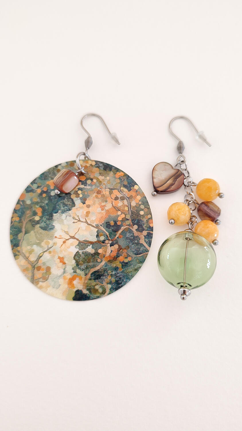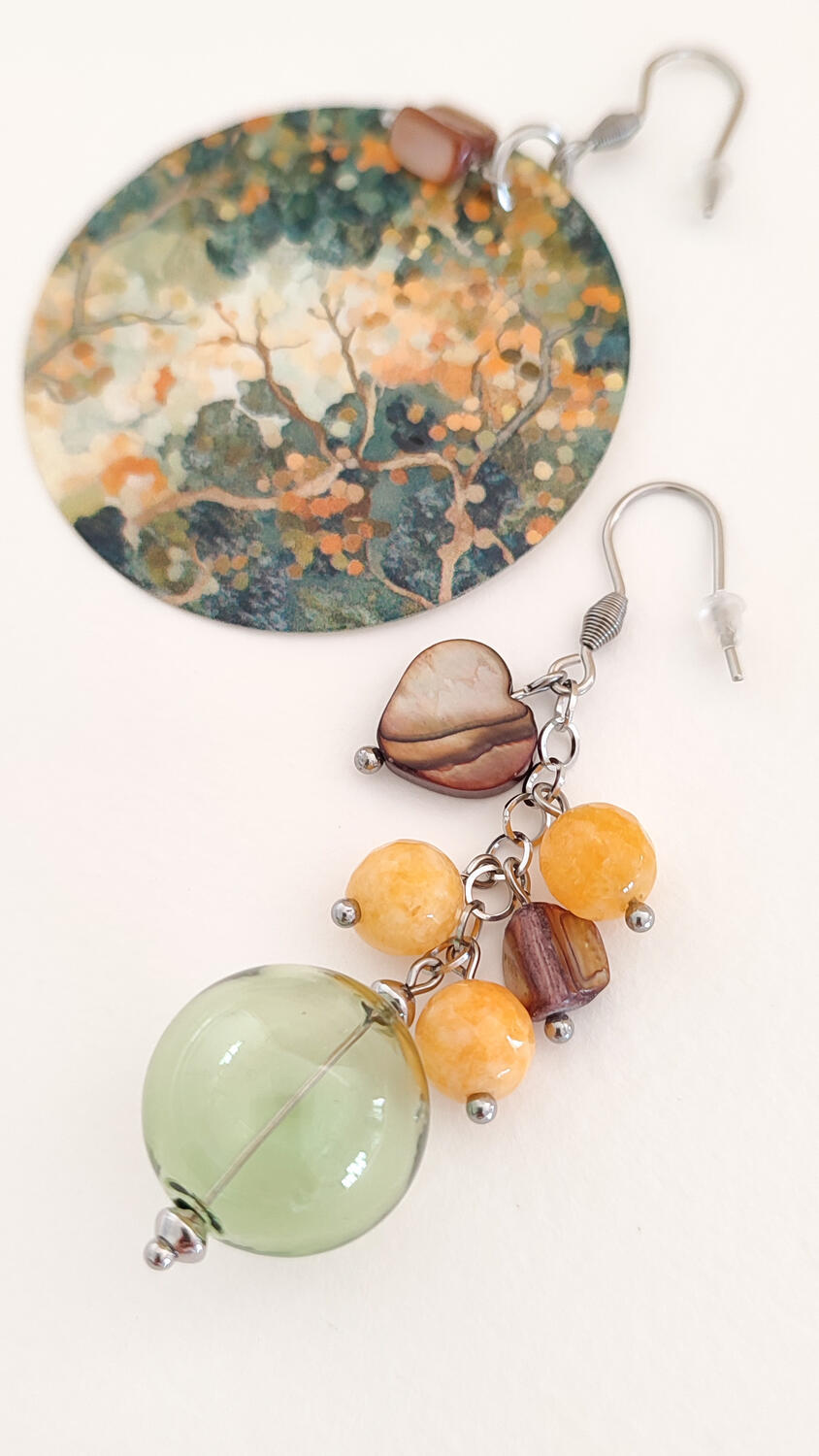 Orecchini Asimmetrici con Madreperla, Vetro soffiato e Giada colorata